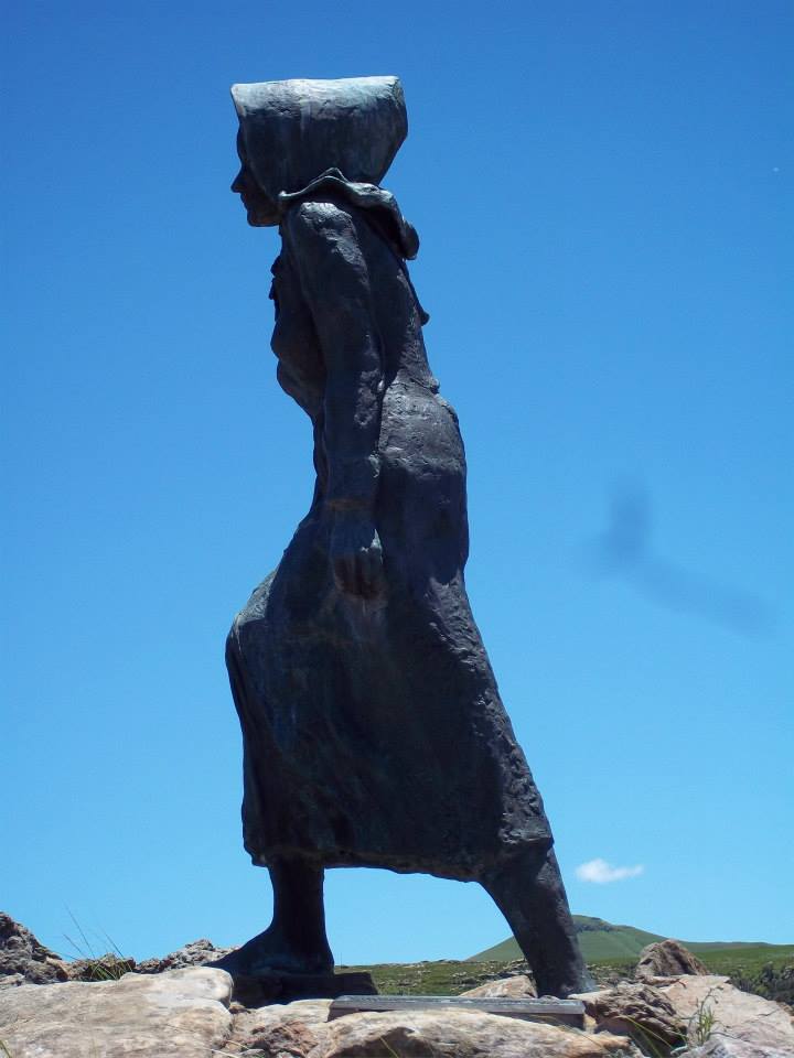 My husband, Matthew, and I love road trips, and a regular stomping ground of ours has been scouring the area where these Voortrekkers would have moved through, favourites being the Oliviershoek Pass from where you can visit Kerkenberg, a magnificent rock formation where Piet Retief’s party waited while he and about 70 men formed a delegation to Dingane, which led to their demise. Not far away is Retief Pass, and the Kaalvoetvrou Monument (Barefoot Woman Monument) commemorating Susanna Smit (born Maritz), sister of Gerrit Maritz and wife of the Voortrekker lay preacher, Erasmus Smit. Susanna famously stated that she would walk barefoot across the mountains rather than live under the yoke of British oppression. The statue shows her defiantly turning her back on Natal and walking up the Drakensberg. Given that Susanna died in Pietermaritzburg, this did not happen, but she remains a symbol of the determination of Voortrekker women. The views from the monument over KwaZulu-Natal are too magnificent to be missed.